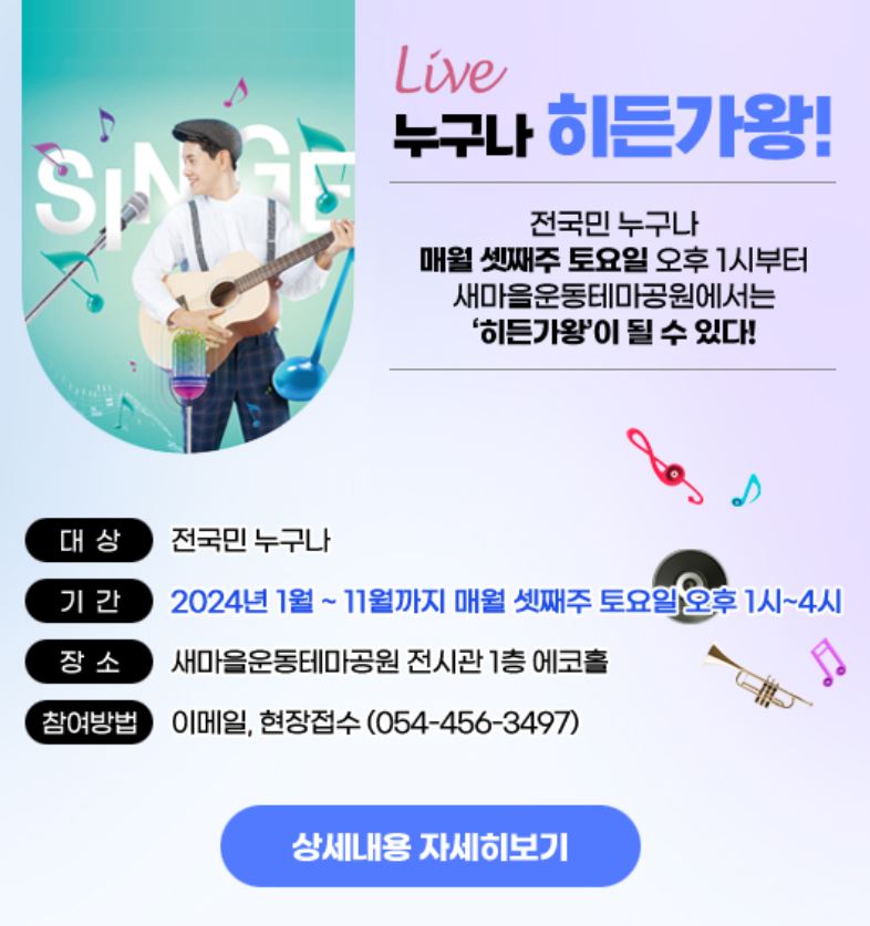 새마을 테마공원에서 진행하는 누구나 히든 가왕에 도전해보는건 어떨까?