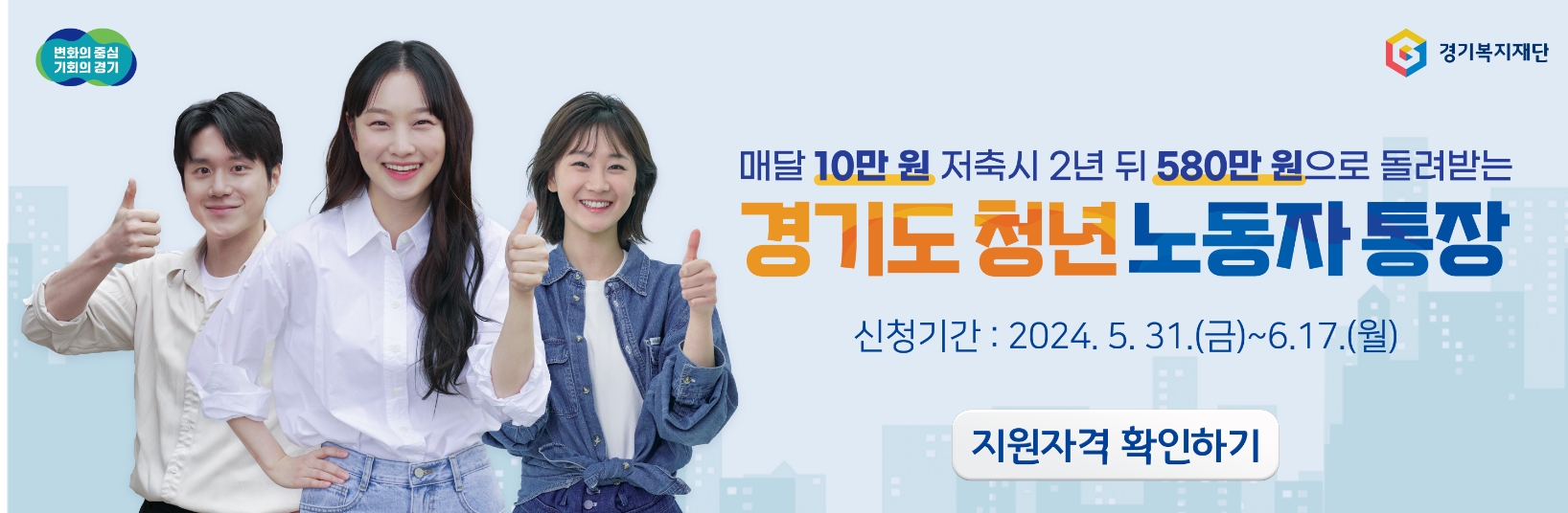 공고일(24. 5. 24.) 기준 주민등록상 주소지가 경기도인 청년