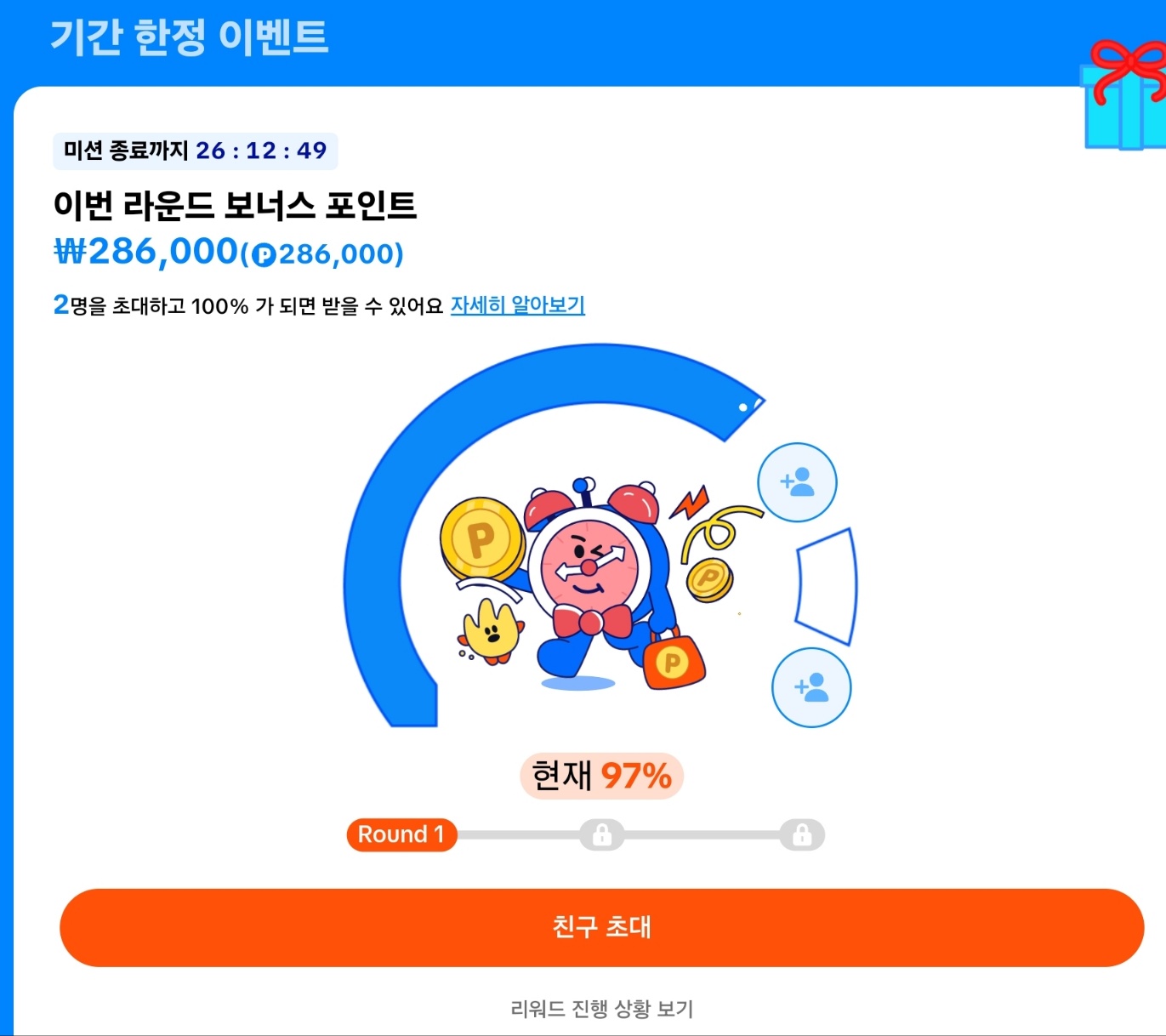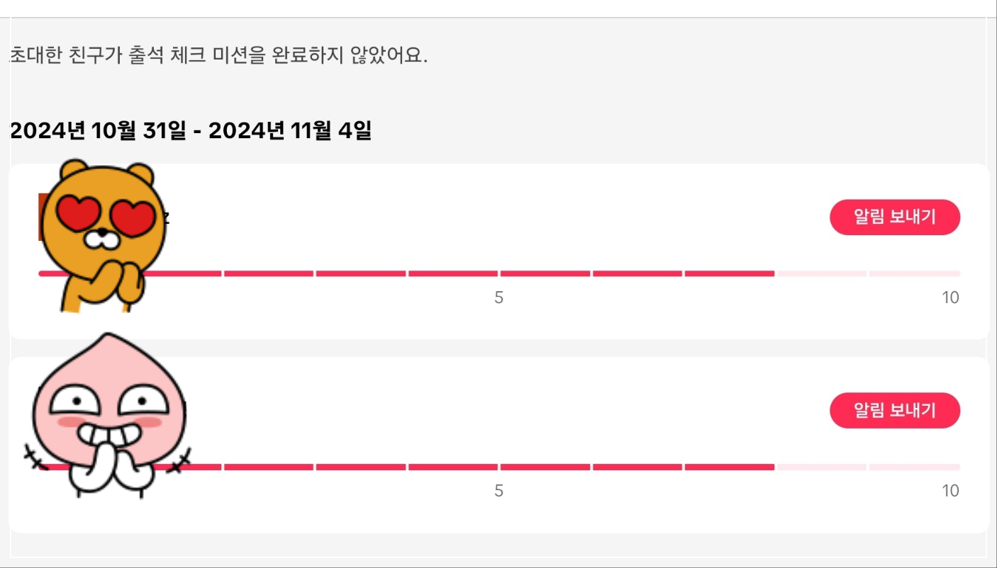 단, 하루라도 빠지면 보상 지급이 안되니 초대한 친구에게 하루라도 빠지지 않도록 출석체크에 대해