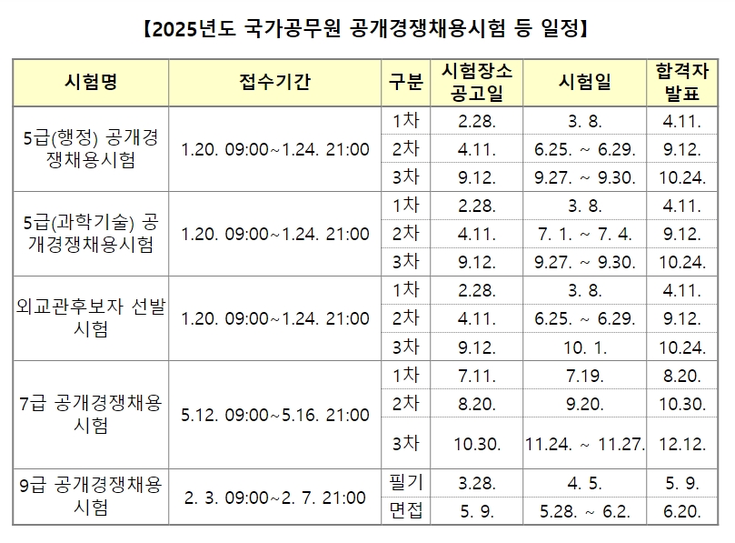 2025년도 국가공무원 공개경쟁채용시험 등 일정이 사이버국가고시 센터를 통해 공개되었습니다.