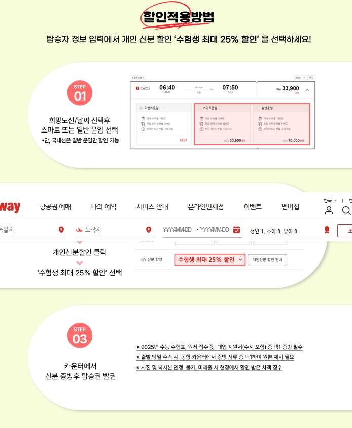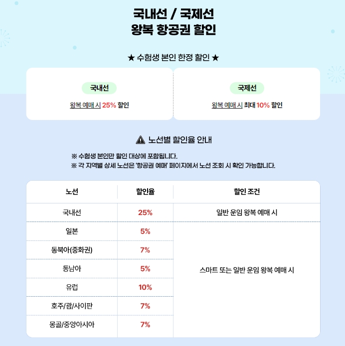 수험생 분들을 위한 여행 경비 지원 프로젝트 할인 노선 놓치지 마세요